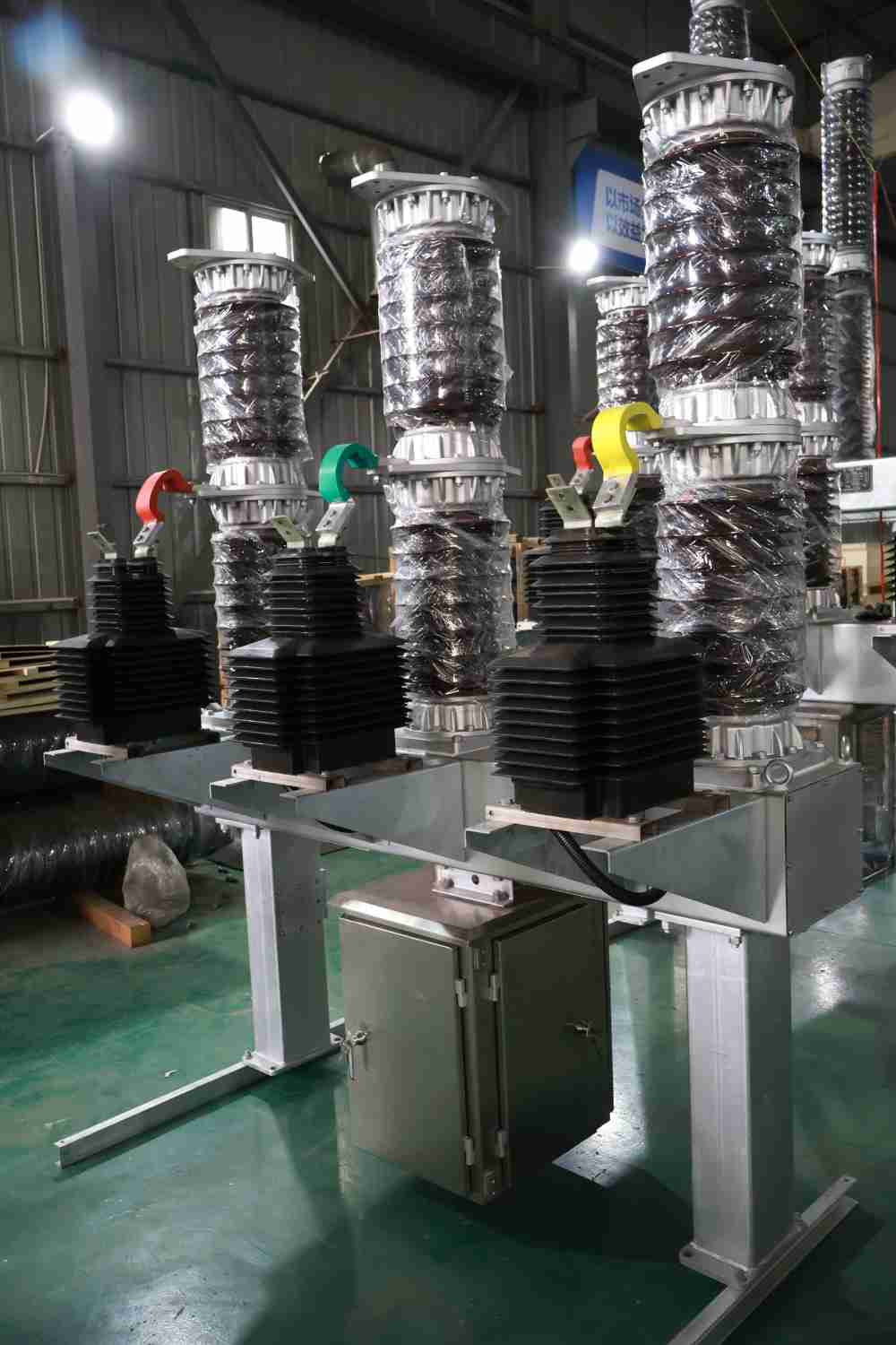 고전압 변속기 네트워크 : 변압기 및 변속기 라인을 보호하기 위해 500kV 이상의 변전소에 사용됩니다.